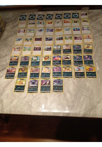 Black moon trading game set non basic. Set comprises of 3 stadium cards . 26 Pokemon cards. 14 item cards. 12 Supporter cards & 5 Pokemon energy cards per set. Total legal playng set ready to play and also build up your set to get stronger cards hen you obtain these. remember the pokemon game only allows max 60 cards which has been made up for you to start playing with other opponents. Happy Gaming. All sets listed in each catagorie is not the same all diffent in each set you may purchase. All original pokemon cards no copies purchased from the usa.ack moon trading game set