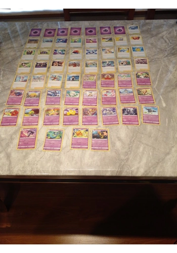 Purple eye trading game set non basic. Set comprises of 3 stadium cards . 26 Pokemon cards. 14 item cards. 12 Supporter cards & 5 Pokemon energy cards per set. Total legal playng set ready to play and also build up your set to get stronger cards when you obtain these. remember the pokemon game only allows max 60 cards which has been made up for you to start playing with other opponents. Happy Gaming. All sets listed in each catagorie is not the same all diffent in each set you may purchase. All original pokemon cards no copies purchased from the usa.