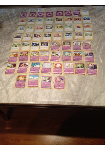 Purple eye trading game set non basic. Set comprises of 3 stadium cards . 26 Pokemon cards. 14 item cards. 12 Supporter cards & 5 Pokemon energy cards per set. Total legal playng set ready to play and also build up your set to get stronger cards when you obtain these. remember the pokemon game only allows max 60 cards which has been made up for you to start playing with other opponents. Happy Gaming. All sets listed in each catagorie is not the same all diffent in each set you may purchase. All original pokemon cards no copies purchased from the usa.