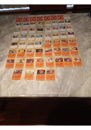 Red flame trading game set non basic. Set comprises of 3 stadium cards . 26 Pokemon cards. 14 item cards. 12 Supporter cards & 5 Pokemon energy cards per set. Total legal playng set ready to play and also build up your set to get stronger cards when you obtain these. remember the pokemon game only allows max 60 cards which has been made up for you to start playing with other opponents. Happy Gaming. All sets listed in each catagorie is not the same all diffent in each set you may purchase. All original pokemon cards no copies purchased from the usa.