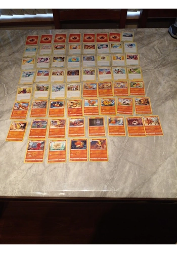 Red flame trading game set non basic. Set comprises of 3 stadium cards . 26 Pokemon cards. 14 item cards. 12 Supporter cards & 5 Pokemon energy cards per set. Total legal playng set ready to play and also build up your set to get stronger cards when you obtain these. remember the pokemon game only allows max 60 cards which has been made up for you to start playing with other opponents. Happy Gaming. All sets listed in each catagorie is not the same all diffent in each set you may purchase. All original pokemon cards no copies purchased from the usa.