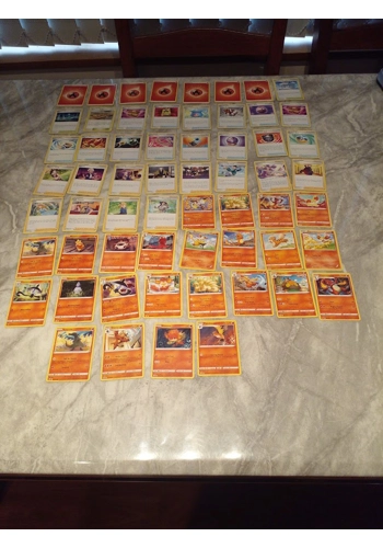 Red flame trading game set non basic. Set comprises of 3 stadium cards . 26 Pokemon cards. 14 item cards. 12 Supporter cards & 5 Pokemon energy cards per set. Total legal playng set ready to play and also build up your set to get stronger cards when you obtain these. remember the pokemon game only allows max 60 cards which has been made up for you to start playing with other opponents. Happy Gaming. All sets listed in each catagorie is not the same all diffent in each set you may purchase. All original pokemon cards no copies purchased from the usa.