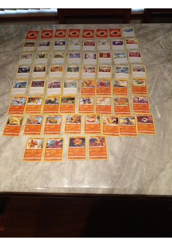 Red flame trading game set non basic. Set comprises of 3 stadium cards . 26 Pokemon cards. 14 item cards. 12 Supporter cards & 5 Pokemon energy cards per set. Total legal playng set ready to play and also build up your set to get stronger cards when you obtain these. remember the pokemon game only allows max 60 cards which has been made up for you to start playing with other opponents. Happy Gaming. All sets listed in each catagorie is not the same all diffent in each set you may purchase. All original pokemon cards no copies purchased from the usa.